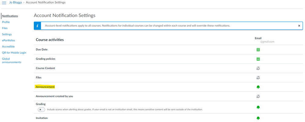 You will then receive a notification to this email address from notifications@instructure.com. Click on "