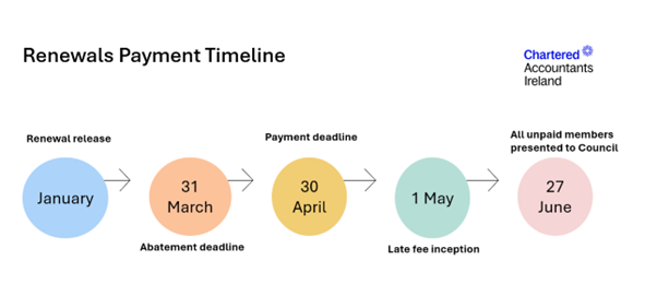 Payments should be made via the Chartered Accountants Ireland website using your existing membership number and bank details.